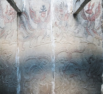 据市考古研究所所长张志忠介绍,北魏吕续浮雕彩绘石椁墓,是目前我市发现的唯一一座北魏时期浮雕彩绘石椁墓。椁室内雕刻的墓主人升仙图、导引图、四神图等有明显的汉代遗风和宗教色彩,南壁外侧所雕刻的异域镇墓武士的发型、样貌、体态、穿着等,明显与汉文化风格不同,为研究民族融合、中西文化交流提供了新的实物资料。明间西廊柱刻有北魏太安二年(公元456年)铭文,为该墓提供了确切纪年。铭文记载墓主人吕续为扶风县民,可以断定墓主人来自河西地区,与史书记载的北魏人口大迁移史料相吻合。特别是石椁西壁外的随意雕刻疑似坐佛像,推测可能与云冈石窟的开凿有关,但仍需进一步研究证实。