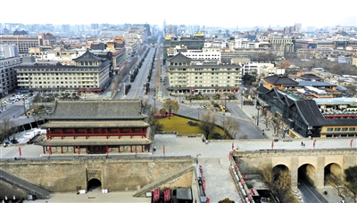 12月28日拍摄的西安市永宁门附近区域(无人机照片)。