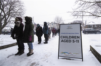 ▶ 12月27日,戴口罩的人们在加拿大多伦多一处新冠疫苗接种点外排队。