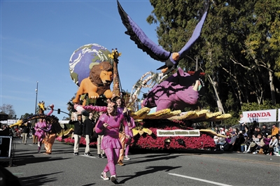 ▶ 这是2022年1月1日在美国帕萨迪纳拍摄的新年玫瑰花车游行队伍。