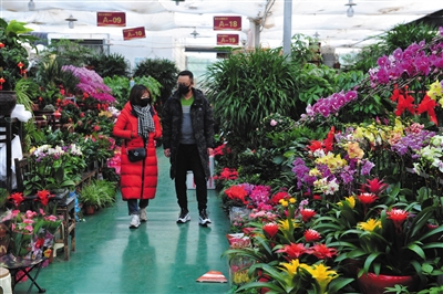 图为市民在花卉市场内选购鲜花。 本报记者 于宏 摄