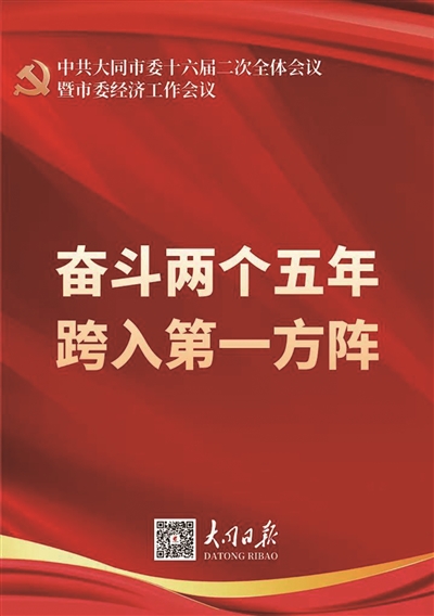 2021年12月30日,中共大同市委十六届二次全体会议暨市委经济工作会议召开。全会听取和讨论了市委常委会工作报告,分析研判形势,部署2022年经济工作,形成了高度共识,确立了“奋斗两个五年,跨入第一方阵”的总体目标。