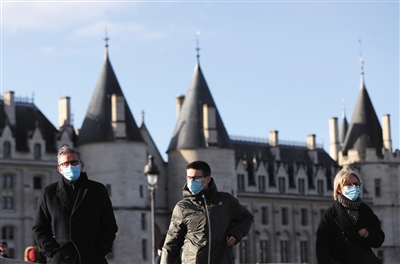 ◀ 1月5日,人们走在法国巴黎塞纳河畔。