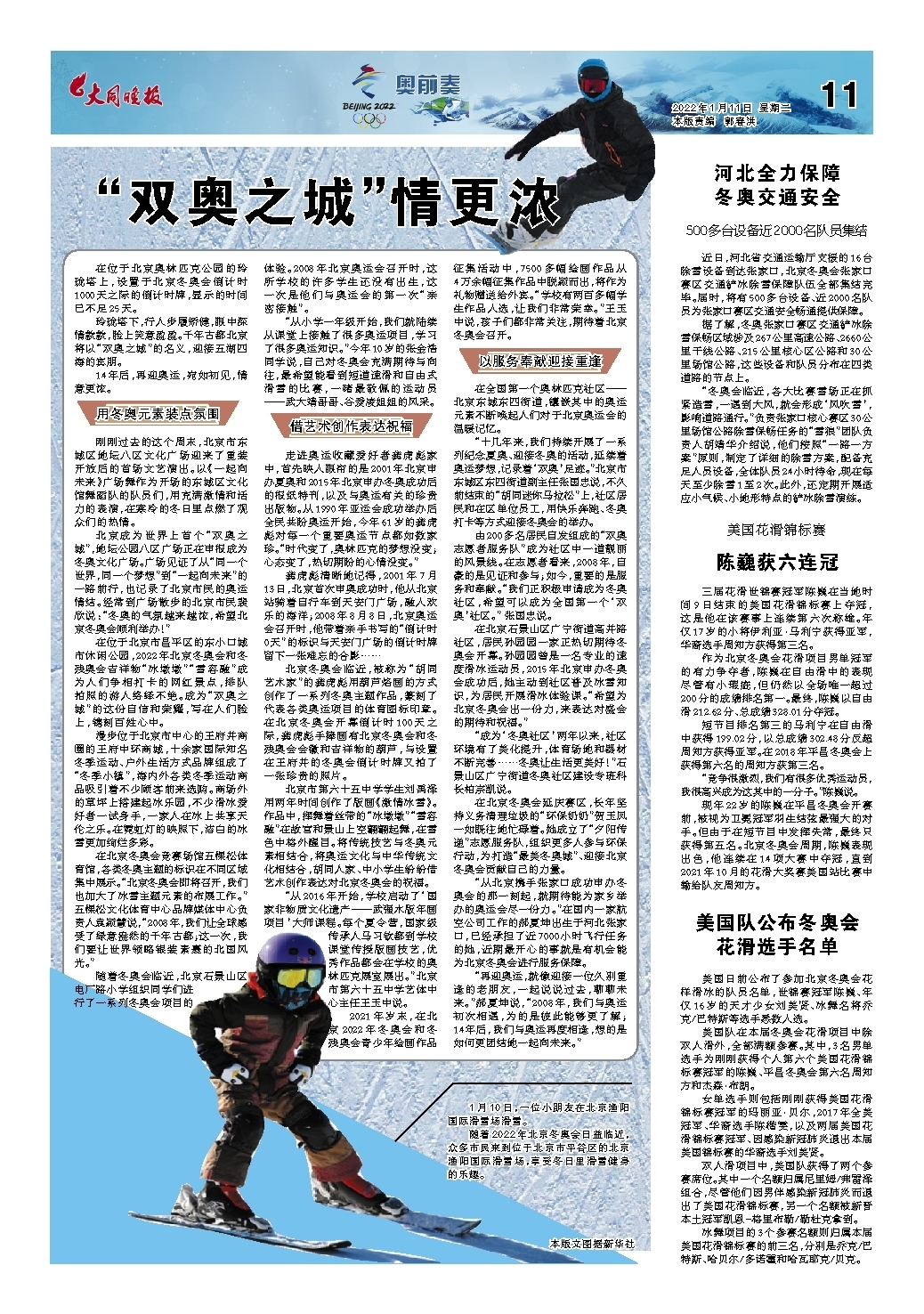 “十几年来,我们持续开展了一系列纪念夏奥、迎接冬奥的活动,延续着奥运梦想,记录着‘双奥’足迹。”北京市东城区东四街道副主任张国忠说,不久前结束的“胡同迷你马拉松”上,社区居民和在区单位员工,用快乐奔跑、冬奥打卡等方式迎接冬奥会的举办。