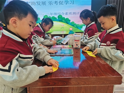 “孩子,你回答得非常棒!”11日下午,市实验小学的教室里项目式学评正在有序进行。该校一年级以即将举办的北京冬奥会为主题,将各科题目与冬奥会知识进行有趣融合;二年级则以“文明创城 行动有我”为主题,以情境将语文、数学、道德与法制、音乐、美术等科目的测评活动串联起来,让学生在乐学、乐评中快乐成长。