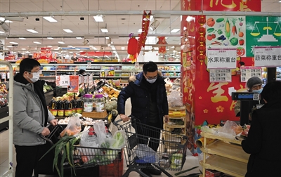 居民在天津市西青区中北镇一大型超市内购买蔬菜(1月10日摄)。