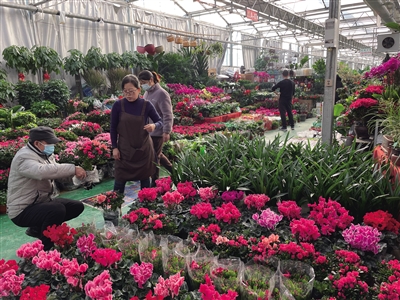 11日中午,记者来到西环路一家花卉市场看到,各种盆栽和鲜花琳琅满目、五彩缤纷,瞬间拉开一场视觉盛宴,深吸一口气,清雅的芳香沁入心脾,心情也随之放松下来。各摊位前,问价的、挑选的、购买的市民络绎不绝。有的摊主正在介绍养花技巧,有的摊主通过短视频直播,忙得不可开交。其中,花色多样的蝴蝶兰是时下最畅销的品种,此外,杜鹃花、君子兰、仙客来等色彩喜庆的花卉也非常受欢迎。