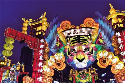 近日,济南市槐荫区印象济南·泉世界的虎年生肖花灯点靓泉城济南夜生活,营造浓浓的节日气氛。 本版文图据新华社
