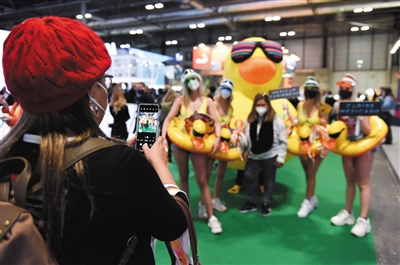 1月19日,观众在西班牙马德里国际旅游展上拍照。