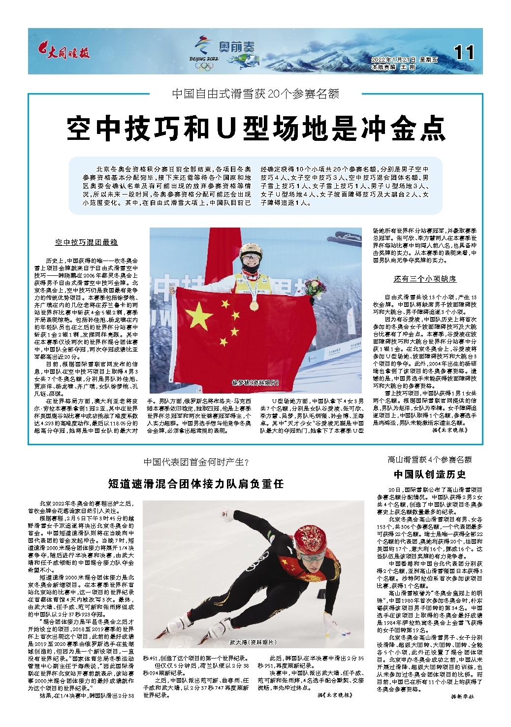 空中技巧和U型场地是冲金点