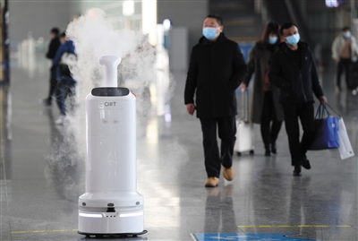 兴国西站客运员李非凡告诉记者,“兴兴”是智能机器人,可以自主完成旅客引导、安全宣传、问题咨询等车站服务,承担电子客票无纸化和日常疫情防控消杀“大使”,对站内地面进行消毒。