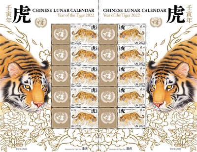 联合国邮政管理局1月21日在纽约发行中国农历壬寅虎年特别版邮票版张,庆祝中国农历新年的到来。这是该邮票版张样图。