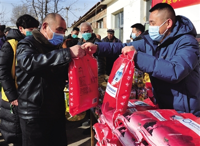 26日,市文化馆党支部和北京市仁爱慈善基金会的志愿者来到文化馆帮扶村阳高县友宰镇东团堡村,开展“慈善行 献爱心”走访慰问活动,为村民发放了大米、食用油、糖等慰问品,并送去新春祝福,让村民切实感受到社会各界的关爱和温暖。 本报记者 于宏 摄