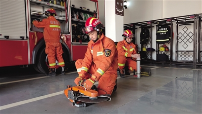今年24岁的邢晓东虽是大同人,但已在武警江苏省总队机动支队工作了5年。去年退伍后,进入大同市消防救援支队当了一名消防员。如今虽然家近在咫尺,他却没时间回家过节。“西街消防救援站负责整个古城的消防安全工作,由于春节和元宵节安排在古城内的各种活动较多,因此站里需要提前部署,精心安排,做好春节期间的消防安全保障工作。”邢晓东一边检查设备一边对记者说。