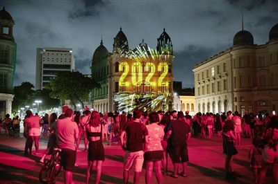 《金蛇狂舞》《金狮拜年》《恭喜恭喜》……当地时间1月30日晚,中国人熟悉的旋律响彻巴西东北部城市累西腓的夜空。在欢快的旋律中,城区老房的外墙变成幕布,大红灯笼、福字、虎头和冬奥宣传片被投射其上,一场精彩的“庆新春 迎冬奥”灯光秀在累西腓零点广场上演。