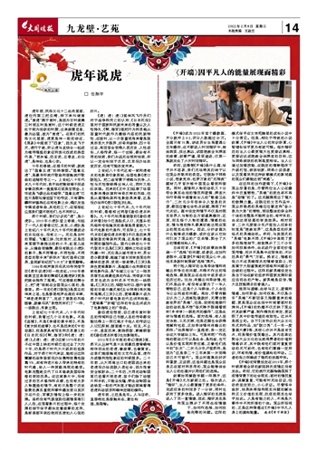 1986年相声演员冯巩刘伟凭借节目《虎年说虎》而一炮走红;1998年春晚黄豆豆表演的舞蹈《龙腾虎跃》更是把晚会推向了高潮。可在春晚的舞台上,把“虎”烙刻在全国观众心里的,是姜昆。那一年的《虎口脱险》是梁左的神来之笔,也是姜昆相声生涯的丰碑,“掉老虎洞里了”,完成了姜昆的风格画像,就像冯巩“我想死你们了”一样,一语既出,形象立现。