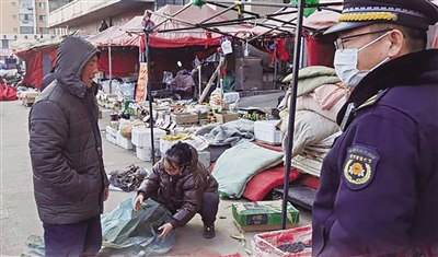 本报讯 (记者 杨翠叶) 近日,平城区武定街道、岳翠园社区联合综合行政执法队、消防人员,对存在安全隐患的岳翠园露天市场进行排查并关停,并对市场摊位堆积的垃圾进行清理。
