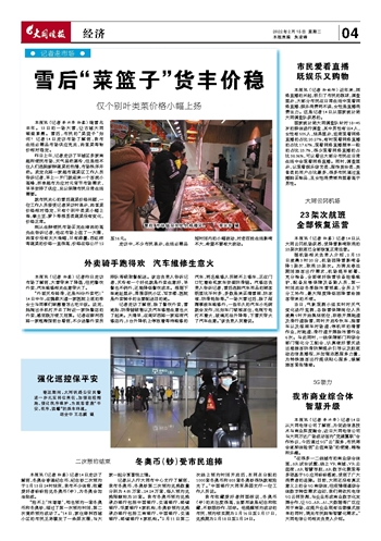 本报讯 (记者 孙露) 记者昨日走访市场了解到,大雪带来了降温,但把餐饮外卖、汽车维修相关生意带火了。
