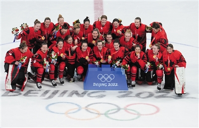 在17日的北京冬奥会女子冰球决赛中,前半程领先的加拿大队顶住了美国队的反扑,以3∶2力克对手,夺得队史第五枚冬奥会金牌,并创造了女子冰球队单届冬奥会打进57球的新纪录。