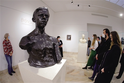 ◀ 2月19日,在罗马尼亚布加勒斯特,人们在“布兰库希日”这一天参观雕塑家布兰库希的作品。