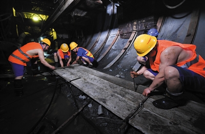 ▲2月22日,工人在陕西引汉济渭工程秦岭输水隧洞施工现场工作。