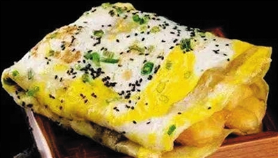 煎饼果子是天津的著名小吃,天津人多以它为早点。煎饼果子主要由煎好的薄饼、鸡蛋、果子(也就是油条)组成,并配以面酱、葱末、辣椒酱等佐料,口感咸香。后来,又出现了由各种丰富的面糊和配料制成的煎饼果子。