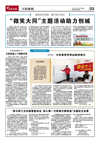 丰富多彩的实践活动不仅让杨梓瑞成长许多,也让他对大同有了更全面的认识。在他看来,近几年大同的经济社会发展迅速,城市建设日新月异,招商引资为经济发展注入活力,就业机会增多,不仅能吸引本地外出求学的年轻人回到家乡,更吸引外地年轻人留同发展。
