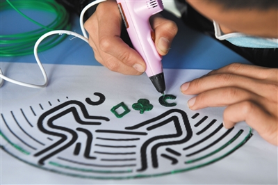 3月1日,城北小学学生学习用3D打印笔绘制立体图案。