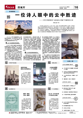 425年前,也就是万历二十五年,也是一个春天,明代重要的思想家、史学家、文学家李贽应大同巡抚梅国桢之邀来到大同,一直住到秋天,写下不少诗文。这座塞上之城、当时明朝的边境之地,何以让一位喜欢抨击时政、提倡人人平等、尊重妇女、婚姻自由等新观念的一代宗师写下名篇绝句?尤其是大同城内最高的标志性建筑乾楼,更是让他诗兴大发。“中丞绥定后,携我共登临。所喜闻谣俗,非干怀壮心,山云低薄暮,楼日压重阴。欲归犹未可,此地有知音。”《乾楼晚眺三首》为大同留下不朽的文化记忆。