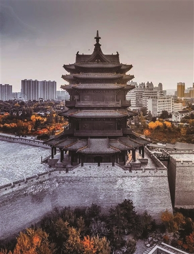 如今,乾楼作为大同古城墙的标志性建筑,是摄影人和游人拍照留念的热门打卡地。春花秋月、夏荷冬雪,护城河环绕城下的乾楼,已是一种古城独特气质的完美呈现。