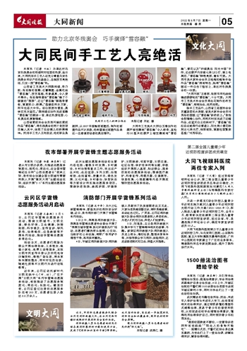 本报讯 (记者 双红) 为表达对北京冬残奥会的祝福和对祖国的热爱,连日来,大同民间手工艺人在充分尊重北京冬残奥会知识产权的基础上,各施技艺亮绝活,引发一拨“雪容融”热。