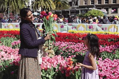 当日,美国旧金山市在市中心的联合广场举办郁金香展,庆祝即将到来的“三八”国际妇女节 。展出的鲜花不仅供市民免费观赏,参观者还可免费采摘。