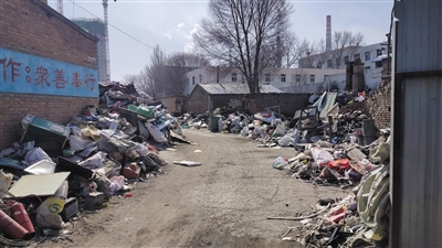 昨日,记者赶往七里村走访发现,该村西边一条路的部分路段,两侧的野草达一米多高。南边一处垃圾点污水满地,老远就能闻到一股恶臭味。再往南约50米有一处废品回收站,不仅占用了十多间闲置的简易房,而且还在路两侧堆积了大量纸箱、塑料瓶、铁丝等废品,长度近百米。由于前一段时间降雪,加上一些村民冬天倾倒生活污水,近日随着天气转暖,村东边地面上的积雪和冰冻的污水消融,造成多条巷道泥泞难行,甚至包括村主干道。