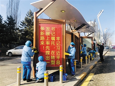 3月5日,国天物业山西区域大同各项目员工纷纷走上街头,擦洗公交站牌、共享单车、垃圾桶、天桥扶手,扮靓城市,以实际行动向雷锋同志学习。