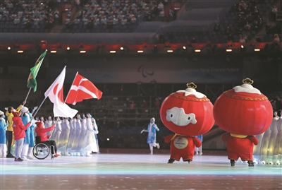 闭幕式上的北京冬残奥会吉祥物“雪容融”