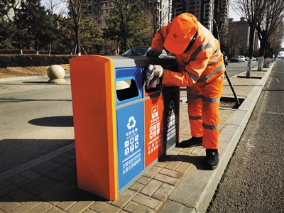 昨日,记者在御河东路看到,道路两侧安装了新式果皮箱,和旧果皮箱相比,新式果皮箱颜色鲜艳,分3个投放口,在果皮箱侧面还设置了烟头投放处,功能齐全,也更加环保。一位正擦拭果皮箱的环卫工对记者说:“果皮箱如同一个人的脸面,为了让过往市民看到整洁靓丽的城市面貌,每天会对负责区域的果皮箱进行擦拭。”