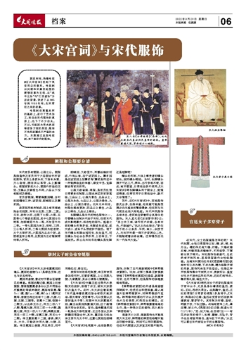 《大宋宫词》将民间女子所穿的服装用于宫中女子,尤其是身份尊贵的皇后、嫔妃、王妃,考虑欠周全。在典籍中,皇后、王妃的常服(日常穿的便服)多是背子。《宋史·舆服志》记载:皇后在受册封后回家拜谒家庙,要穿背子。其形制为对襟、直领,两腋开衩,下长过膝。衣袖有宽窄二式,罩在襦、袄之外。《舆服志》还记载:乾道七年(1171年),“后、妃大袖,生色领(注——有花卉纹样的领子),长裙,霞帔,玉坠子,背子生色领皆用绛色,盖与臣下不异。”从这可以看出宋代宫廷女子的主要服饰。