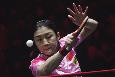20日,在新加坡举行的世界乒乓球职业大联盟(WTT)新加坡大满贯女单决赛中,中国选手陈梦以4∶3战胜队友王曼昱,夺得冠军。图为陈梦在比赛中回球。