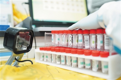 3月23日凌晨,同济大学附属同济医院内的核酸检测实验室灯火通明,工作人员紧张而有序地进行核酸检测工作,助力上海抗击新冠肺炎疫情。据了解,目前该实验室10台检测设备24小时不停机,日处理样本量超万管。