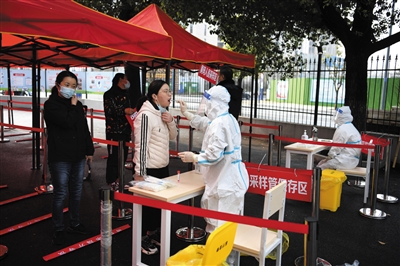 为做好疫情防控工作,安徽省合肥市包河区在辖区内的社区设立核酸检测采样点,方便居民就近进行核酸检测采样。