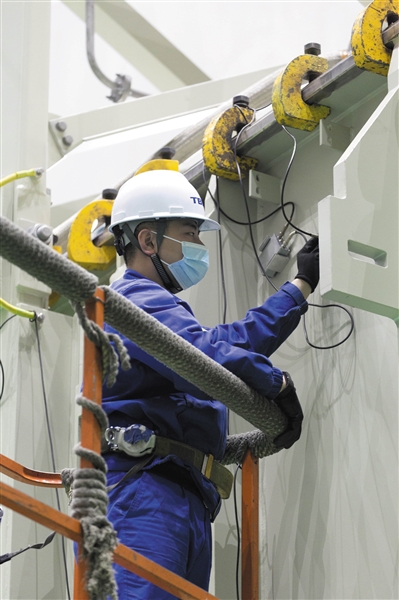 ▲3月27日,在位于辽宁省沈阳市铁西区的特变电工沈阳变压器集团有限公司,工人在生产白鹤滩-浙江特高压直流输电工程产品。