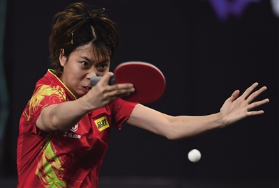 图为中国选手齐菲在比赛中回球。