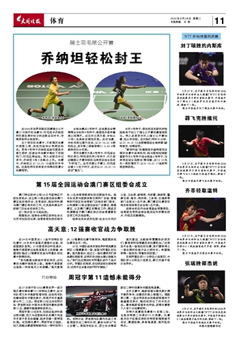 3月27日,在卡塔尔多哈举行的2022年世界乒乓球职业大联盟(WTT)多哈球星挑战赛女子单打首轮比赛中,中国选手齐菲以3∶1战胜德国选手莎宾·温特,晋级下一轮。