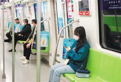 3月30日,乘客在从江宁区发出的地铁3号线列车上。