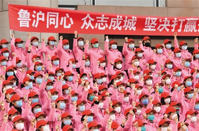 当日,第一批1100余名人员组成的山东省援沪医疗队从济南市乘坐高铁出发,奔赴上海支援疫情防控工作。