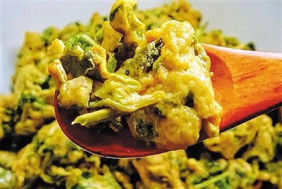 做好的香椿炒鸡蛋不仅味道鲜香适口,营养也极为丰富。而且,看着那金黄翠绿相间的色泽,闻着那鲜美的香椿味道,会让你不禁有一种尽享盎然春意的感觉。所以,即使你不喜欢香椿的味道,但春天来了,不妨试着尝尝香椿做的美食吧。 (王锦华)