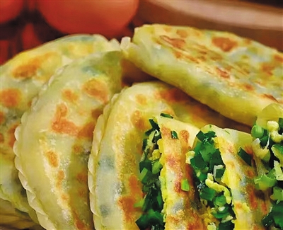 韭菜盒子也是记者十分喜爱的一道主食,特别是小区附近一家名叫“乐品轩”的饭店,除了他家招牌的酱骨头外,最让人念念不忘的就是韭菜盒子了。双面煎得金黄微焦,里面的馅料也很饱满。一口下去,满嘴流油,韭菜独特的香味加上鸡蛋的嫩滑,美味无比。
