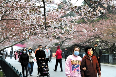 近日,山东省青岛市中山公园内种植的上千株樱花陆续进入花期,整个樱花季将持续到4月中下旬。据青岛市文化和旅游局介绍,樱花季期间,公园按疫情防控要求限定游客数量,同时会开启“云赏樱”模式,对樱花烂漫的盛景进行24小时不间断直播,让市民游客一览樱花之美。 本版文图据新华社