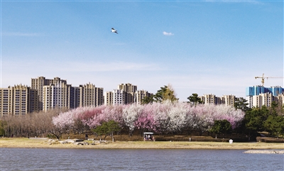 近日,我市各公园的山桃花竞相开放,市民们纷纷走出家门享受好春光。