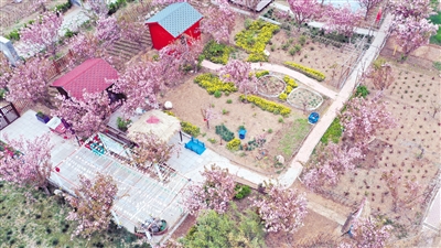 这是4月14日拍摄的石家庄市正定县樱花小镇景色(无人机照片)。